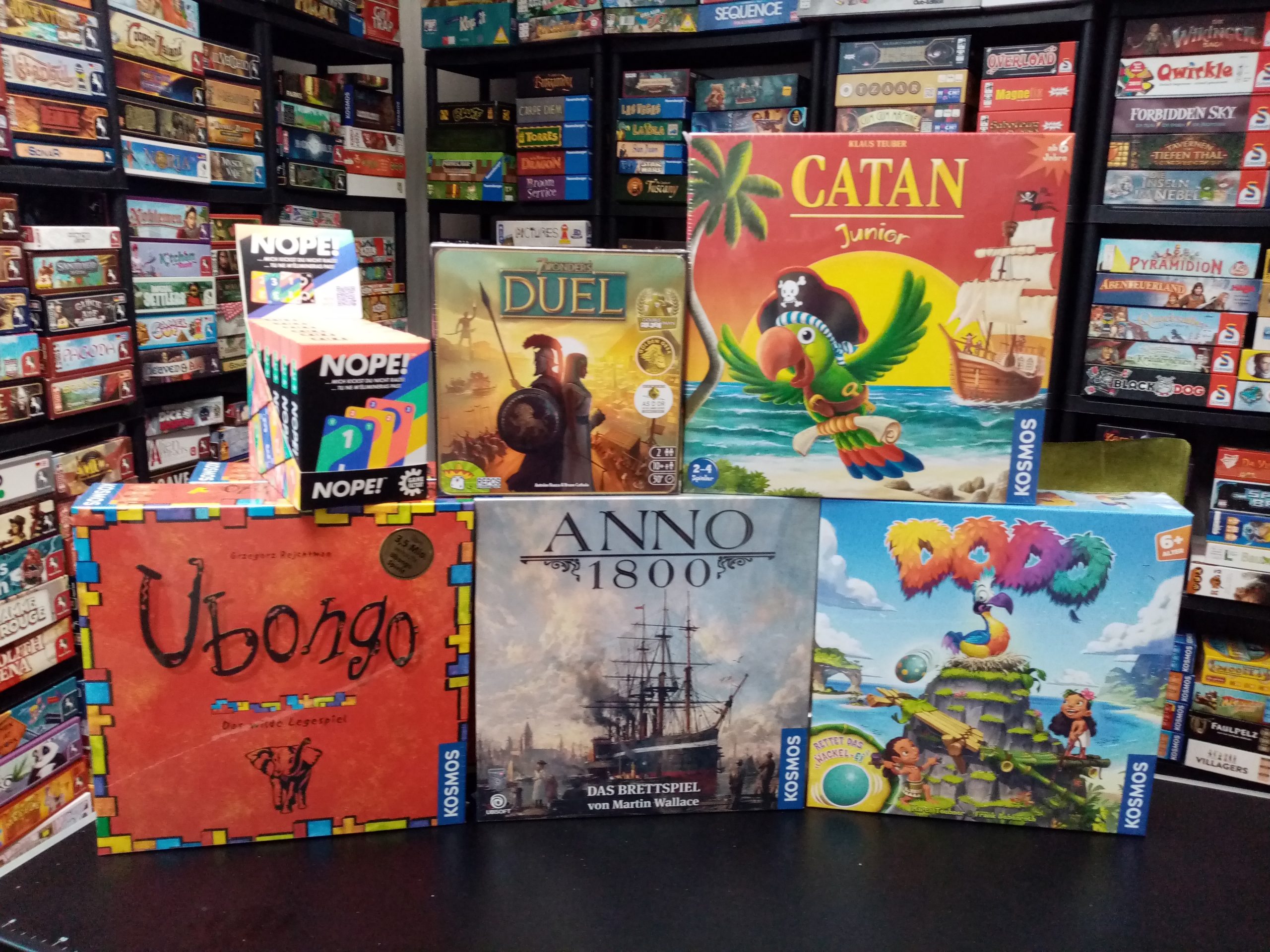 Anno 1800 ist wieder da!!! Und auch Dodo rettet das Ei ist endlich wieder im Haus. Und nicht genug bei den Kinderspielen – Dobble hat sich mit der Welt von Paw Patrol getroffen. Plapparagei ist der neue Hit bei den 3 Magier Spielen. Und Halli Galli trifft Woozle Goozle. Und dazu haben wir noch ein paar Klassiker bekommen wie Tabu, Time’s up, Schach 6 nimmt und Catan Junior. Und weitere Pokemon Figuren sind eingetroffen. Jetzt haben wir auch da wieder eine gute Auswahl.