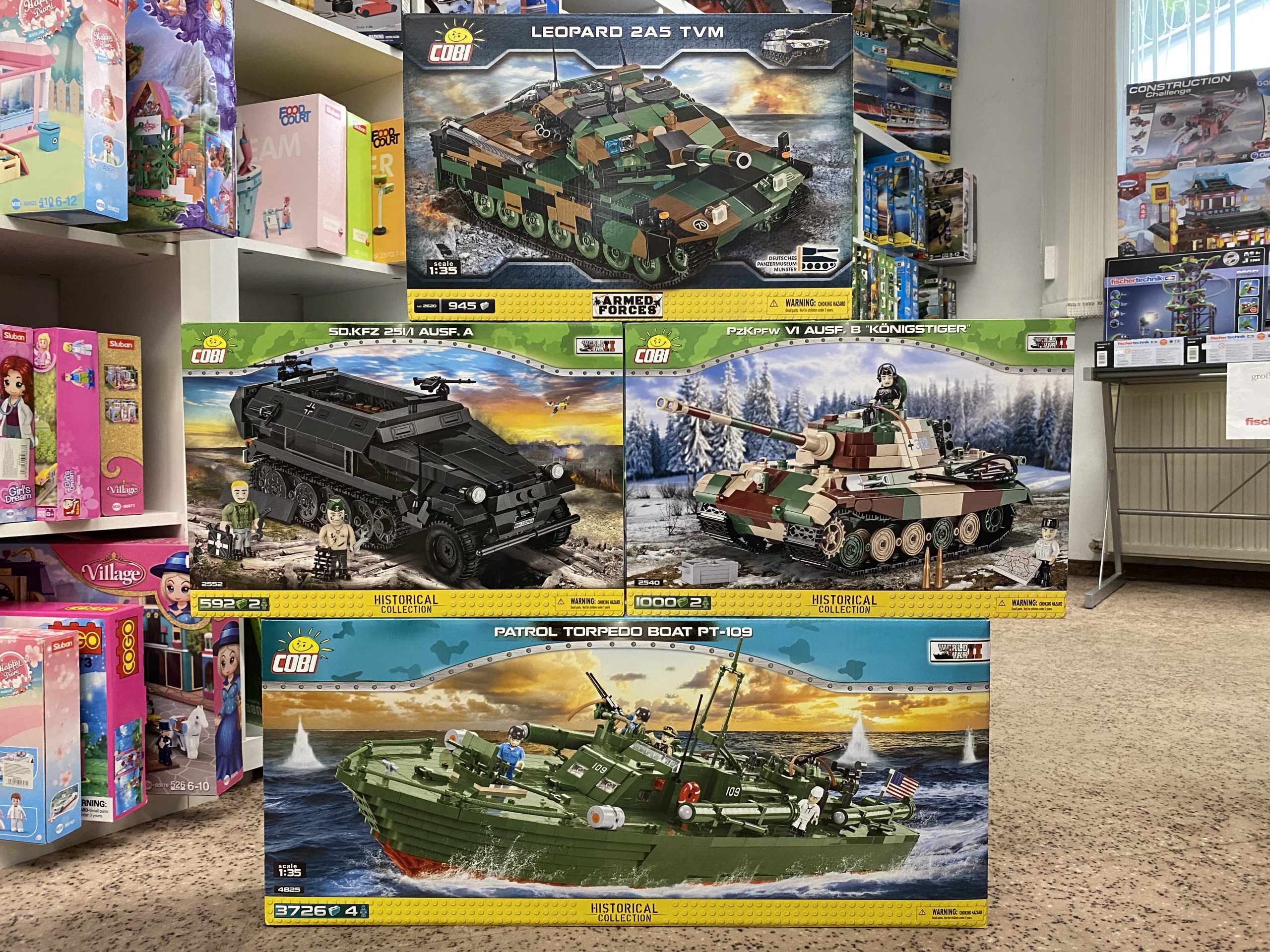 Das Torpedoboot von Cobi ist da, und auch weiter Cobi Klemmbausteine. Ein weiteres Naruto Board Game ist eingetroffen, und auch Hadrians Wall in Englischer Sprache ist wieder lagernd. Mit Terraforming Mars in Deutsch haben wir einen weiteren noch immer sehr gefragten Artikel wieder bekommen. Und auch Villagers haben wir noch mal nach geholt, da es leider keine Weiterführung bei Kosmos gibt. Also schnell zugreifen, wem es in der Sammlung noch fehlt. Und mit Exploding Kittens und und Trial by Trolley ist auch unsere Partyecke wieder aufgefüllt worden.