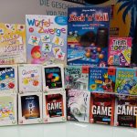 Brandneu sind die Coca Cola Puzzles von Schmidt. Ich mag sie, sind richtig retro. Und einiges Beliebtes hat wieder zu uns gefunden: Die Kartographin, Trails of Tucana, Dungeon Lords und Under Falling Skies. Neu für unsre Zwerge – Spukschloss von Schmidt Spiele. Aber auch Decipher ist wieder im Haus, sowie Through the Ages und Alone. Porto war auch in der Lieferung mit dabei, das haben wir mittlerweile auch ausprobiert, macht richtig Spaß. Auch Sagrada war schon zu lange nicht mehr da. Und Kameloot ist derzeit ohnehin der Hit unter den kleinen Spielen. Der Wochenendbesuch hat einiges zu bieten.