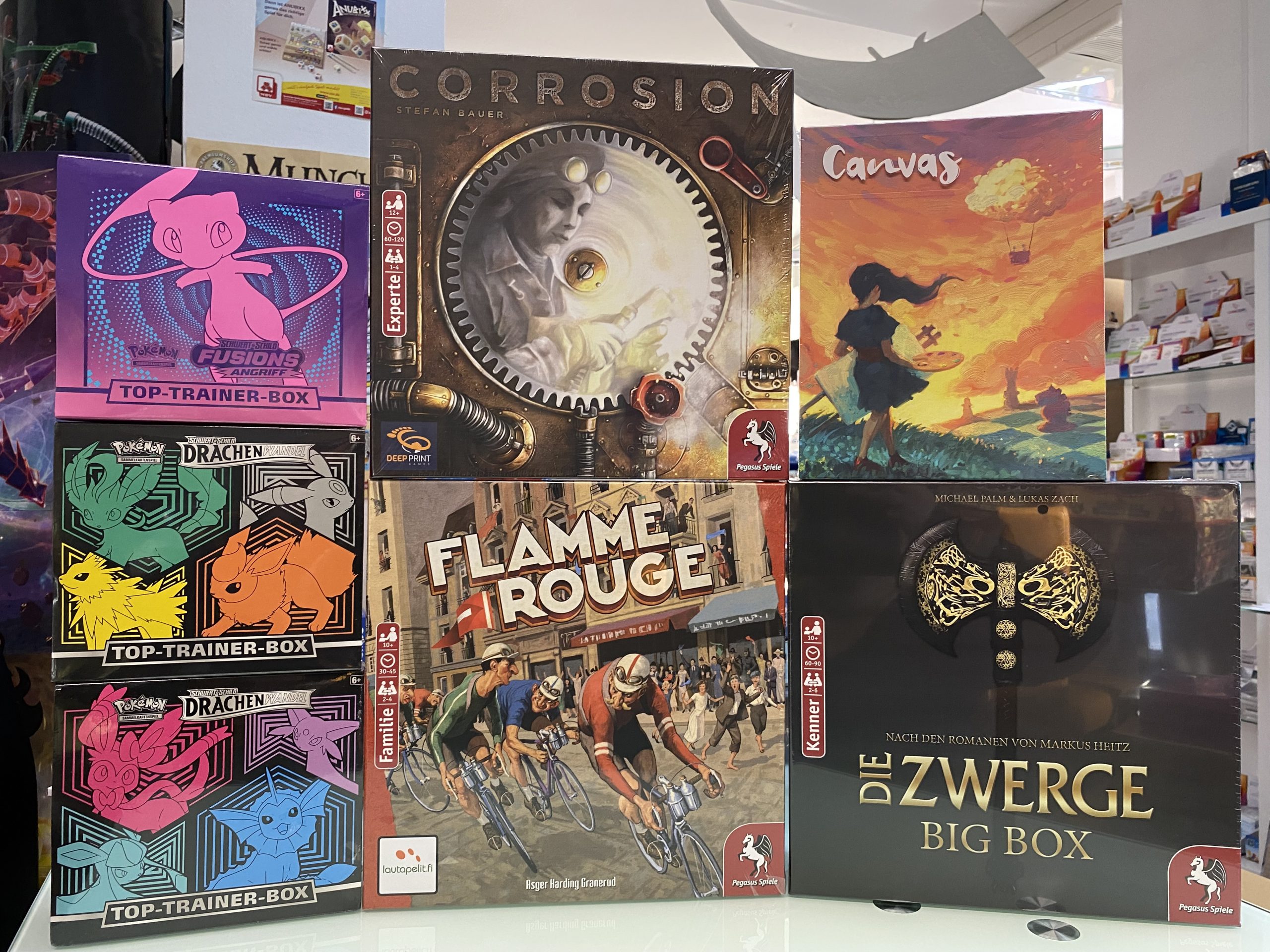 Corrosion, Pokemon, Flamme Rouge, Canvas, Die Zwerge, Das Schwarze Auge, Cthulhu, Chessex Würfel, Dog Royal