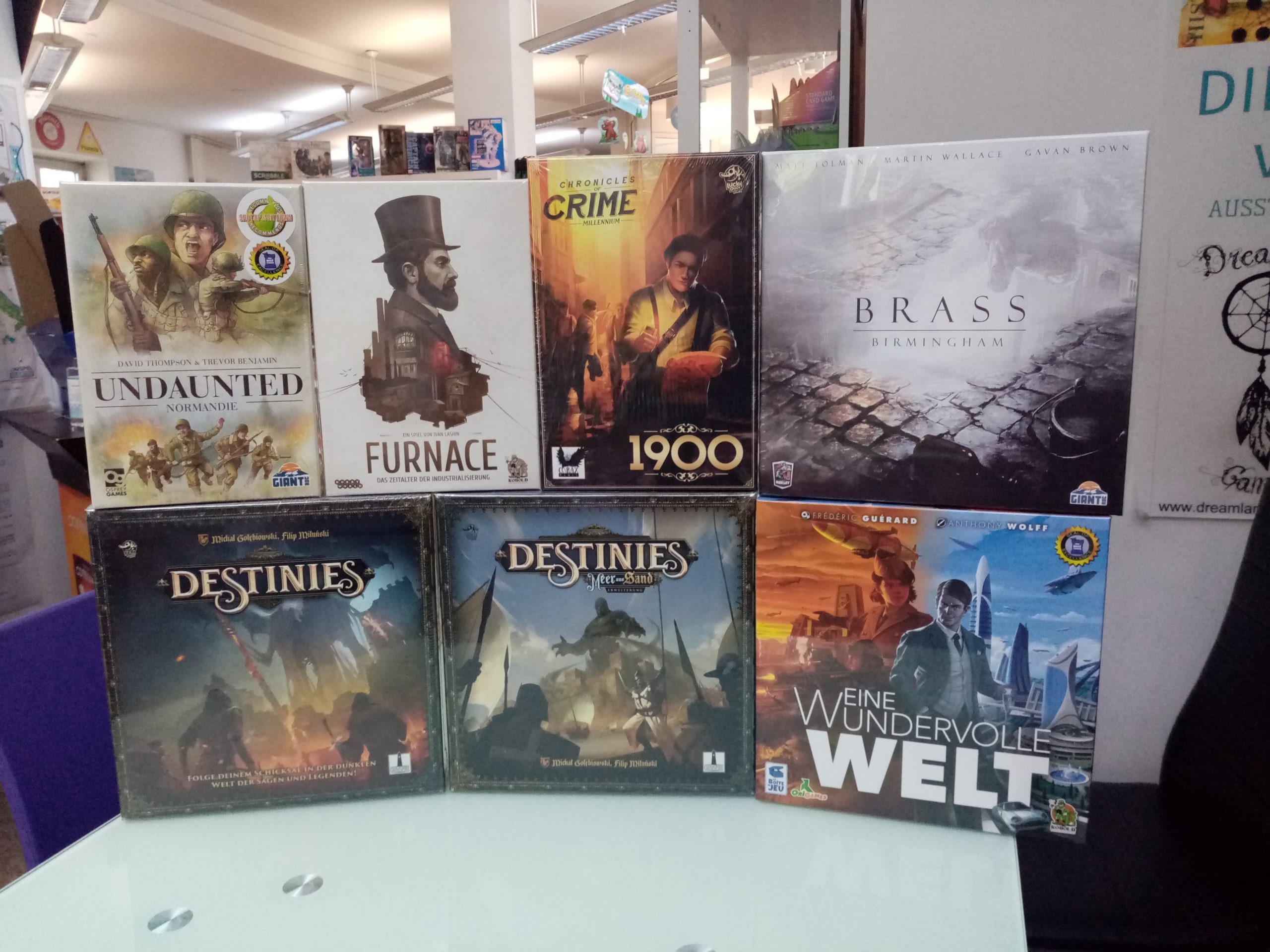 Destinies in deutsch ist eingetroffen und auch Furnace. Für das Final Fantasy TCG haben wir neu das Opus XIV. Für Digimon können wir euch ab sofort eigene Kartenhüllen anbieten. Godzilla Tokyo Clash ist neu im Sortiment. Ein coole Harry Potter Figur hat unseren Merch Bereich erweitert. Gods love Dinosaurs ist wieder im Haus. Auch Wundervolle Welt, Brass Birmingham in deutsch und Chronicles of Crime Millenium 1900 sind wieder da. Mit Whistle Mountain haben wir auch eine Englische Neuheit dabei. Also auch im Sommer haben wir immer wieder Neues für euch im Haus.