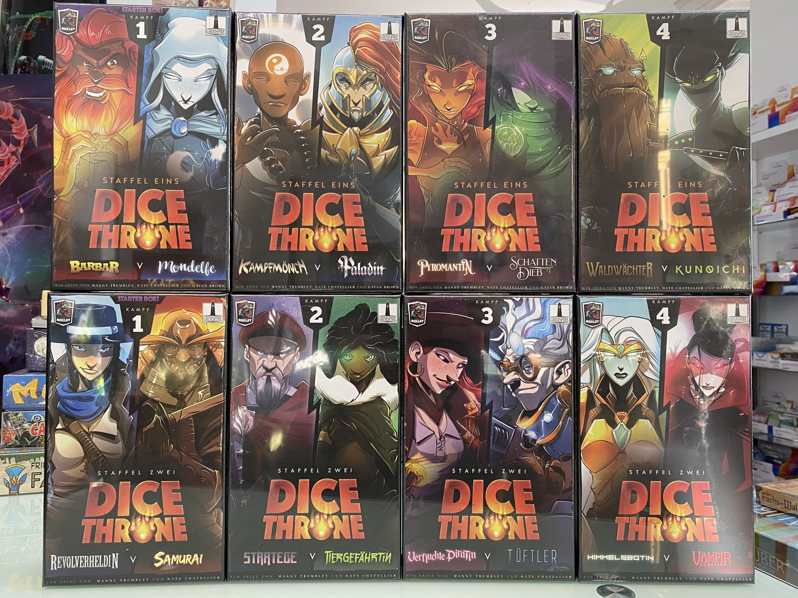 Dice Throne ist in seiner Deutschen Version nun komplett in unserem Haus erhältlich. Staffel Eins und Zwei.