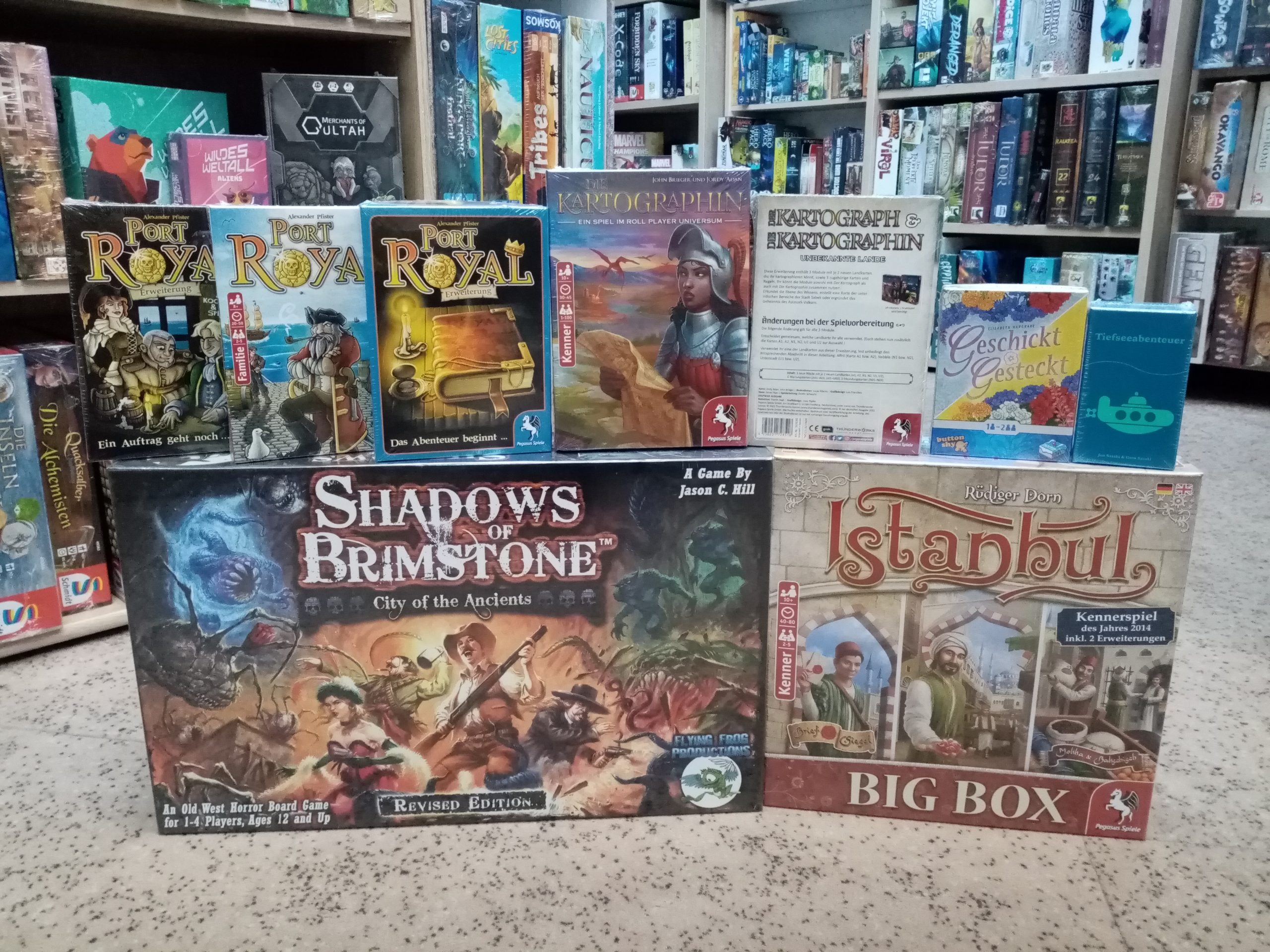 Diesmal Neuheiten am Samstag: Die Kartographin! Und die Carcassonne Jubiläumsausgabe können wir euch anbieten. Marvel Champions in Deutsch hat 2 neue Helden: Thor und Dr. Strange. Mit LoknRoll haben wir ein weiteres Spiel von Board Games Circus im lagernden Sortiment. Unmatched Robin Hood haben wir endlich da, kommt bald mehr. Dragomino, das Kinderspiel der Jahres 2021 ist endlich wieder lieferbar. Juicy Fruits haben wir wieder da, und Auch Praga caput Regni gibt es wieder in deutsch. Riftforce hat auch wieder zu uns gefunden. Die Woche war der Wahnsinn. Und eine Neuheit will ich euch keinesfalls unterschlagen: Die Erweiterung für zwischen zwei Schlössern. Den Rest dürft ihr selbst auf den Bildern oder im Shop erkunden.