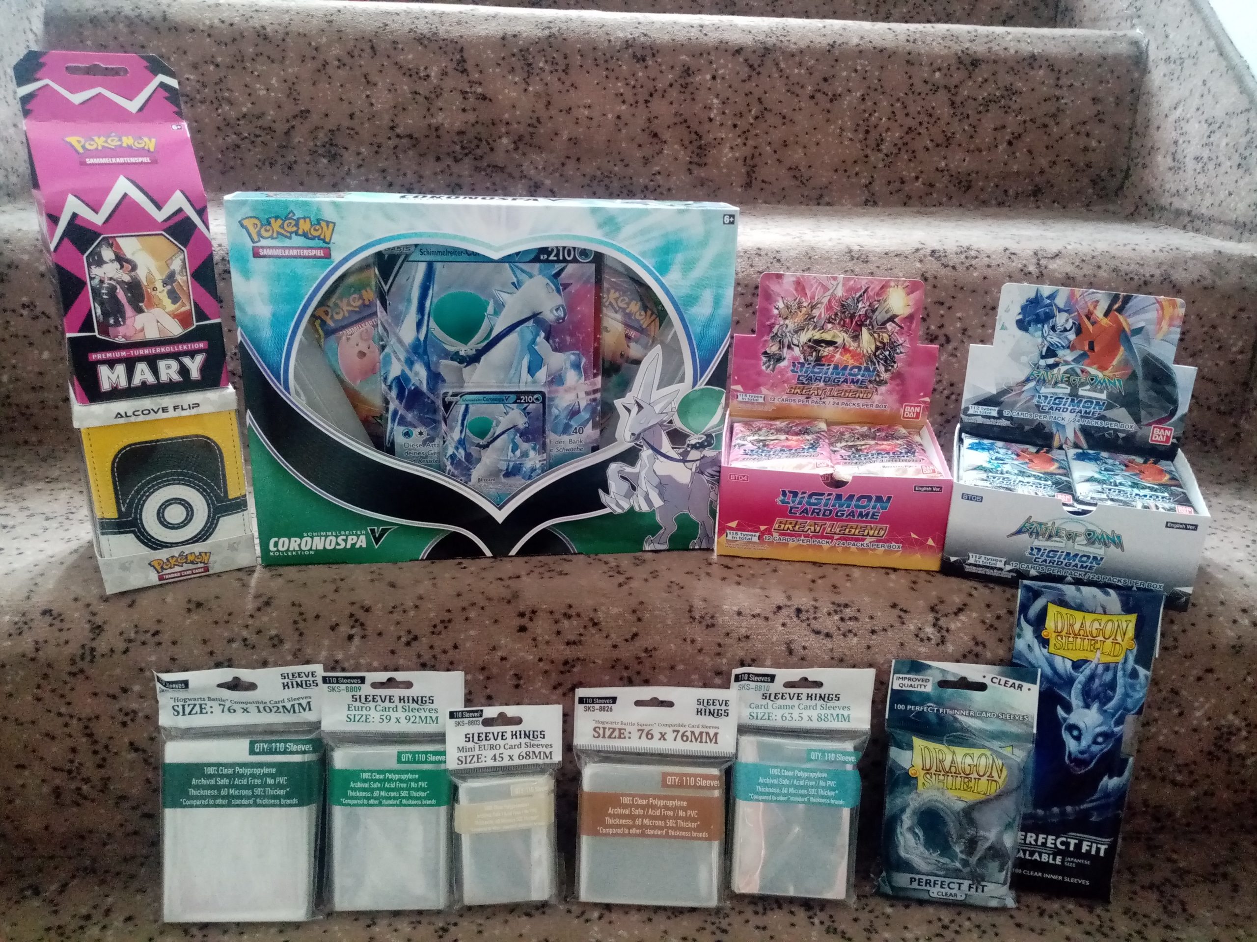 Digimon hat sich bei uns im Haus mittlerweile auch durchgesetzt und wird gut nachgefragt. Talisman Star Wars ist nun von Pegasus auch in deutsch erschienen. Das neue D&D Brettspiel ist auch bereits bei uns zu finden. Das Haus des Geldes Escape Game wurde durch einen Teil 2 erweitert. Pan Am gibt es auch in einer Neuauflage. Die Echoes sind wieder eingetroffen, aber sind sehr gefragt, zur Zeit schneller weg, als ich sie beschaffen kann. Im Bereich RPG haben wir ein neues System im Haus aufgenommen: Lamentations of the Flame Princess. Und 2 coole Puzzles haben sich auch ins Sortiment rein geschlichen: Final Fantasy und Super Mario. Und wie immer findet ihr auf den Fotos noch einiges mehr, aber auch im Geschäft.