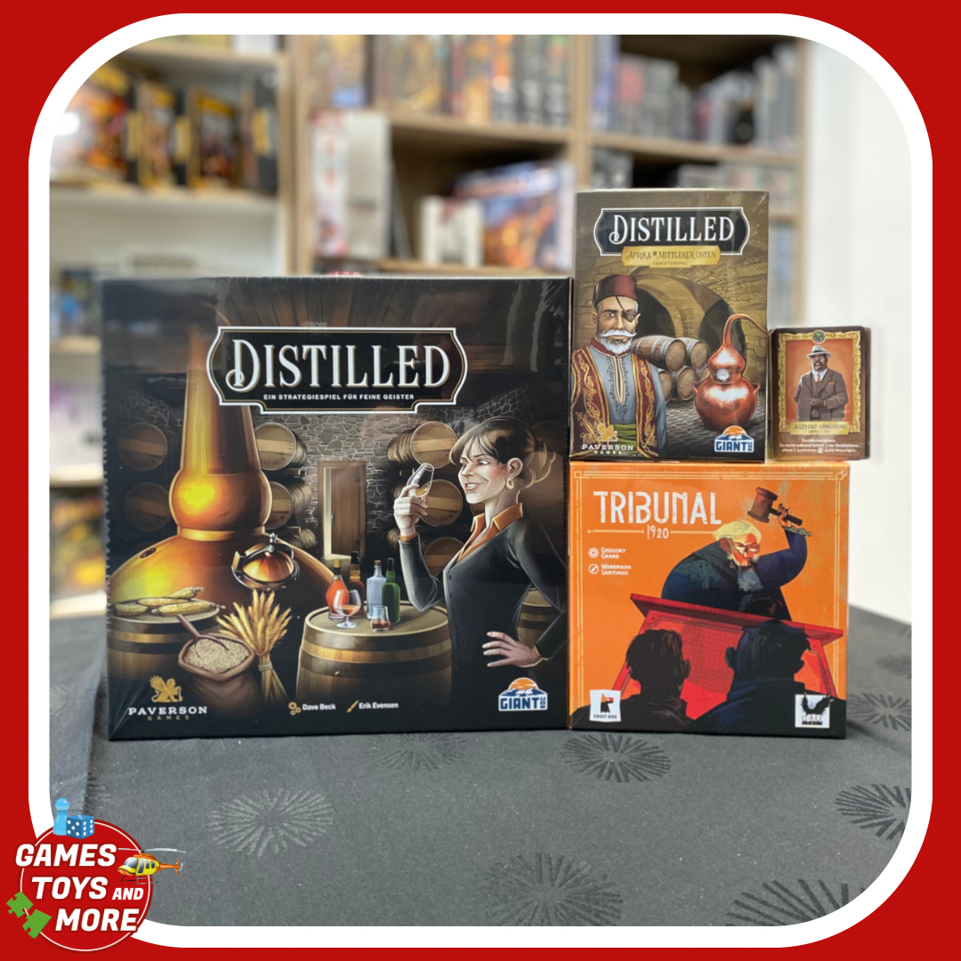 Distilled, Encyclopedia, Black Hole Buccaneers, Puzzle, Tribunal, Dixit, Hitster, Shadowrun, Skyo, Unter Mordverdacht, Onitama, Spirit Island