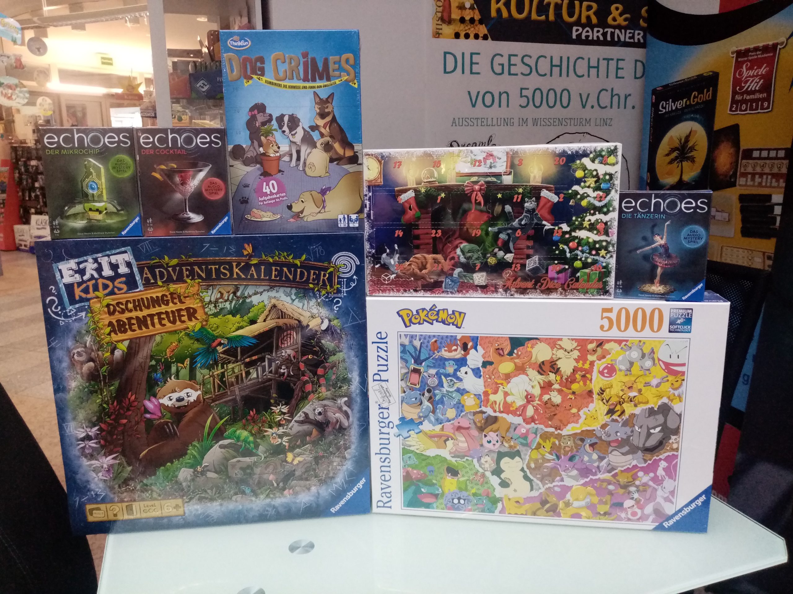 Dog Crimes, der Knobelspaß für Jung und Alt ist neu bei uns eingetroffen und mit Exit Kids Dschungelabenteuer und Dice Calendar werden es auch immer mehr neue Adventkalender bei uns im Haus. Von Magic the Cathering sind die neuesten Booster eingetroffen und auch für unsere Rollenspieler ist etwas dabei.