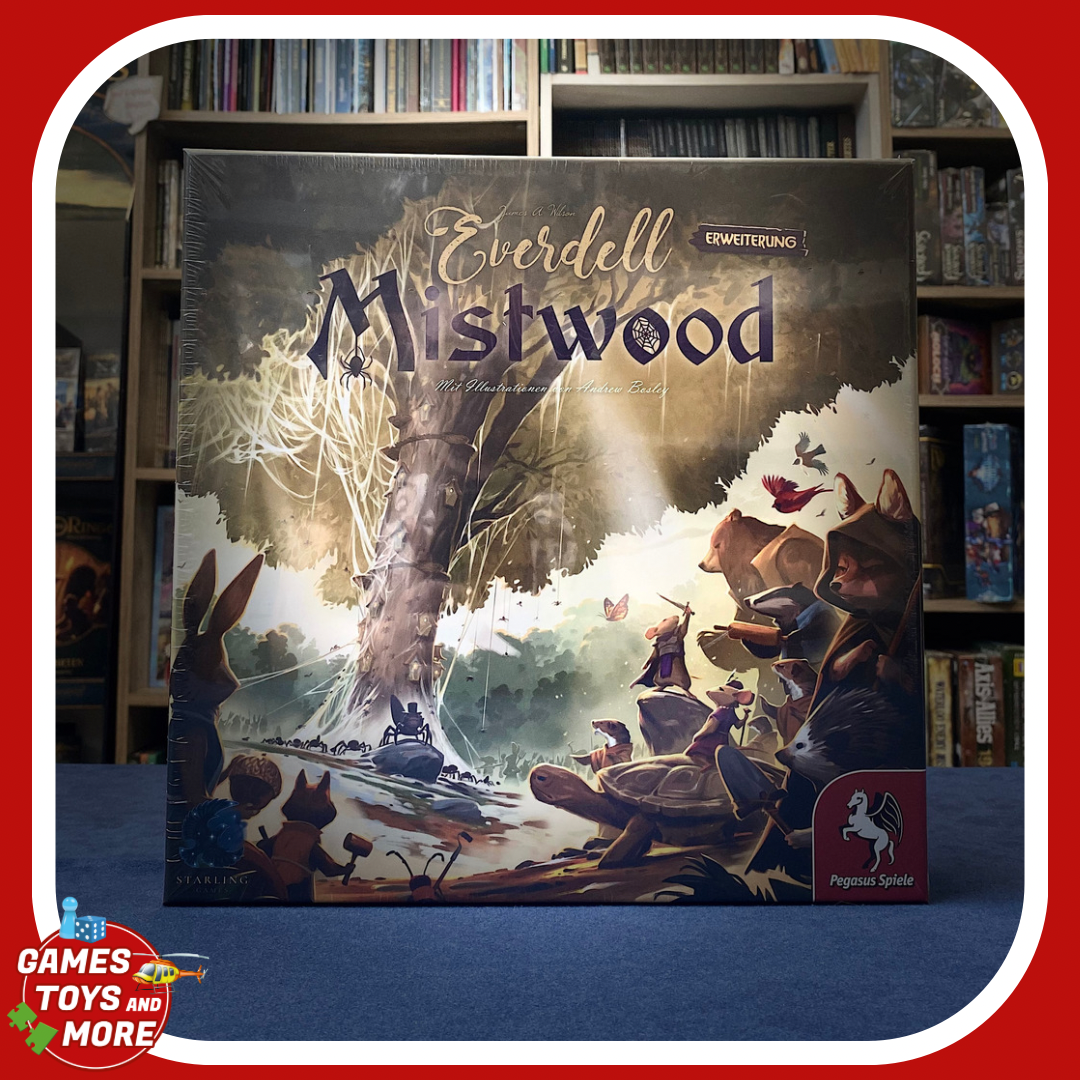 Mistwood ist eine Erweiterung für das Kennerspiel Everdell und richtet sich vor allem an jene, die gerne solo spielen. Phantomia ist eine neue, automatisch agierende Gegnerin, gegen die die Spielenden statt der Ratte Fusselwürz antreten können. Dabei entscheiden sie selbst, welche der diversen Phantomia-Module sie in ihrem Spiel nutzen wollen. Phantomia kann auch im Spiel zu zweit genutzt werden. Die Erweiterung enthält noch einige kleinere Module, die auch unabhängig von Phantomia eingesetzt werden können, zum Beispiel einige besonders starke Legendäre Karten.