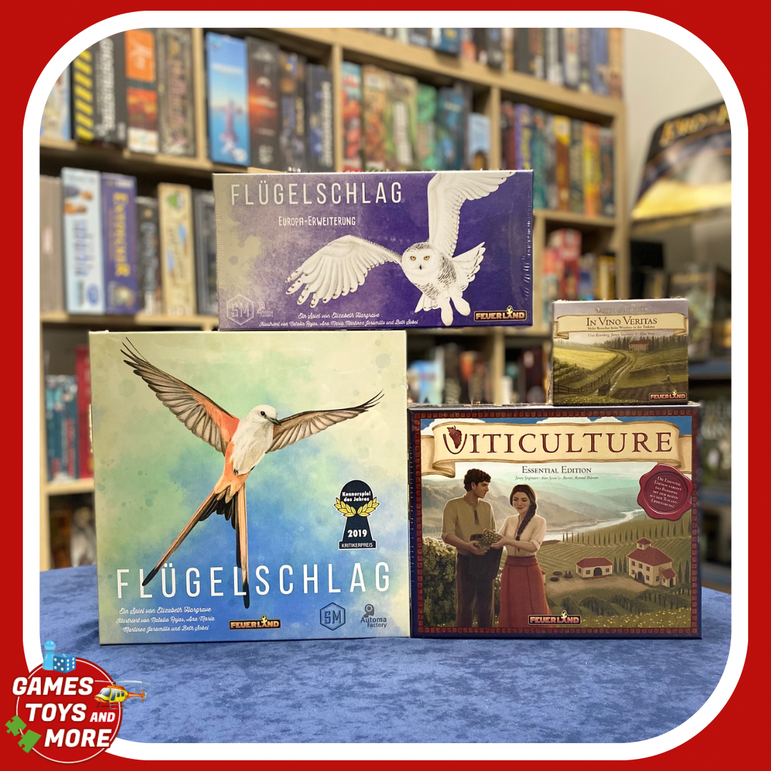 Flügelschlag, Viticulture, Gloomhaven, Wasserkraft, Shadows of Brimstone, Scythe