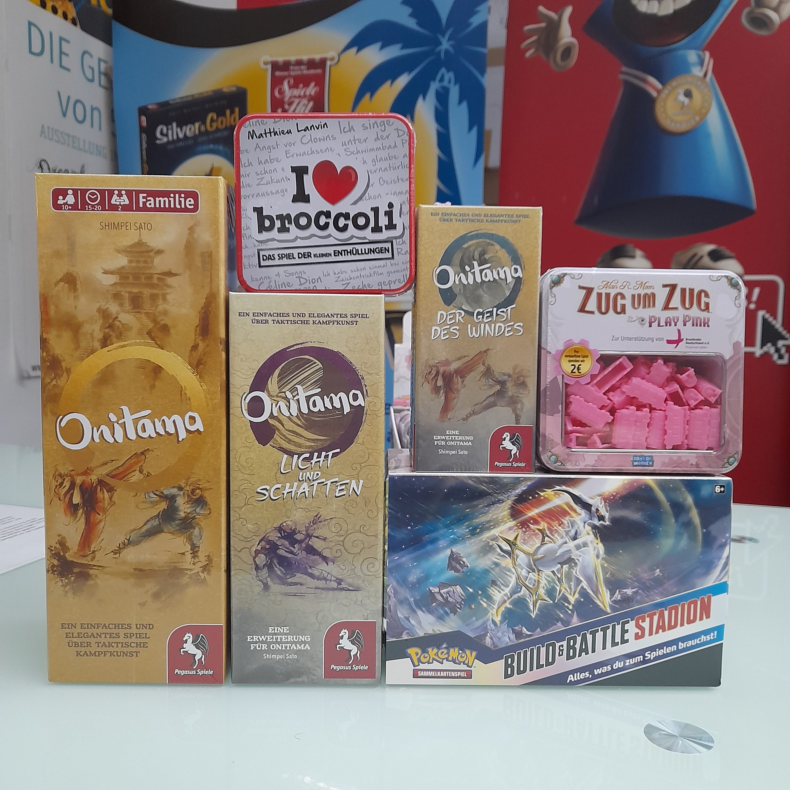 Onitama, I love broccoli, Echt Spitze, Golem , Puzzle, die Villa der Vampire, Pokemon, Tapestry, Aeons End, Messina 1347, Black Powder, Hilo
