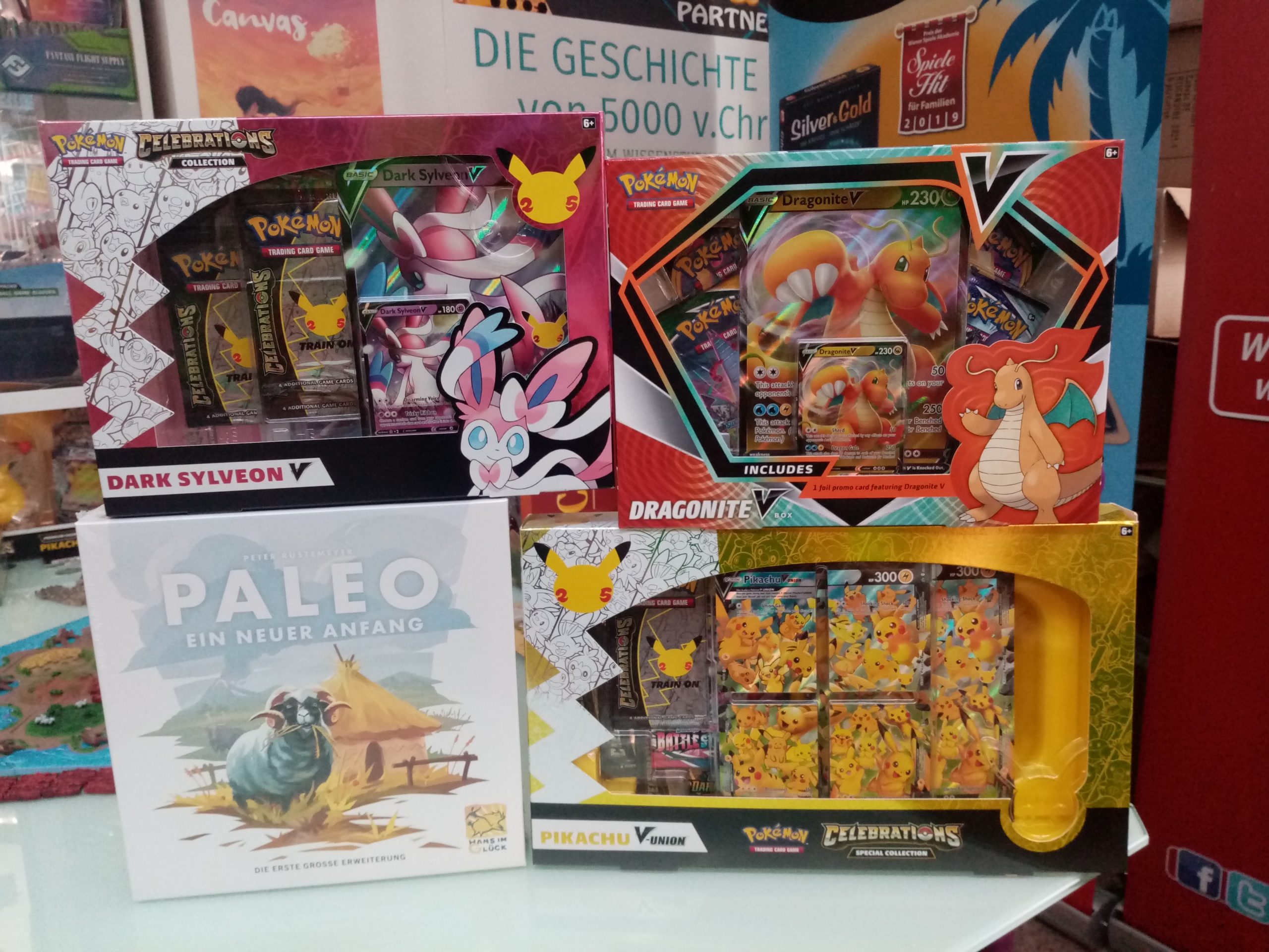 Pokemon, Here to slay, Unstable Unicorns, Paleo Erweiterung, Popup, Wasgij Puzzles, Digimon