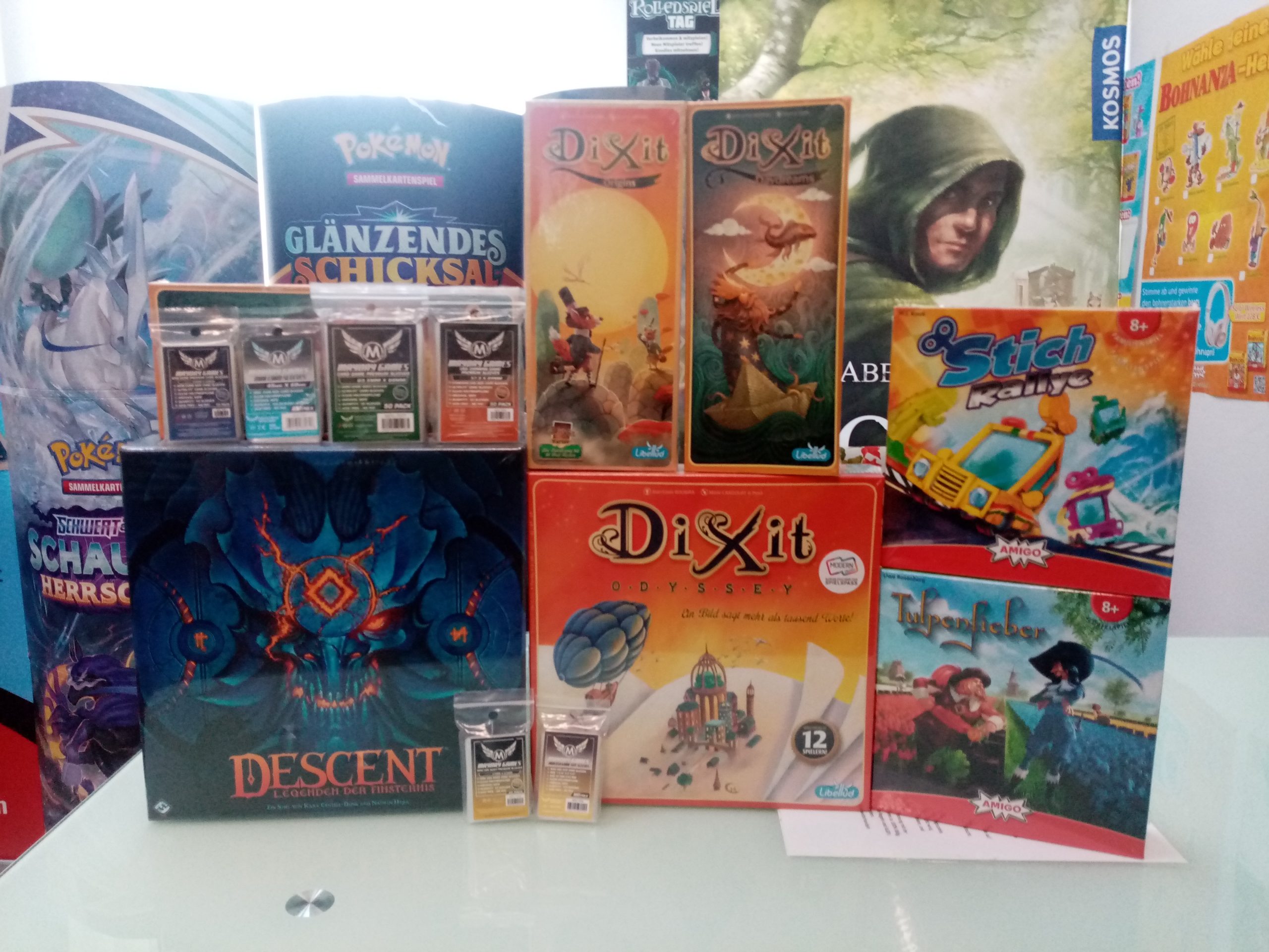 Die Amigo Neuheiten haben uns erreicht: Stichrallye und Tulpenfieber. Und wir konnten nochmal Descent herbei zaubern. Auch brandneu: Maglev Metro – vorerst mal nur in Englisch erhältlich. Und jede Menge Shadows of Brimstone Nachschub ist gekommen. Und auch Tidal Blades haben wir wieder im Haus. Und wir können auch mit Clank Legacy aufwarten. Also beim nächsten Besuch gibt es wieder allerhand zum schauen.