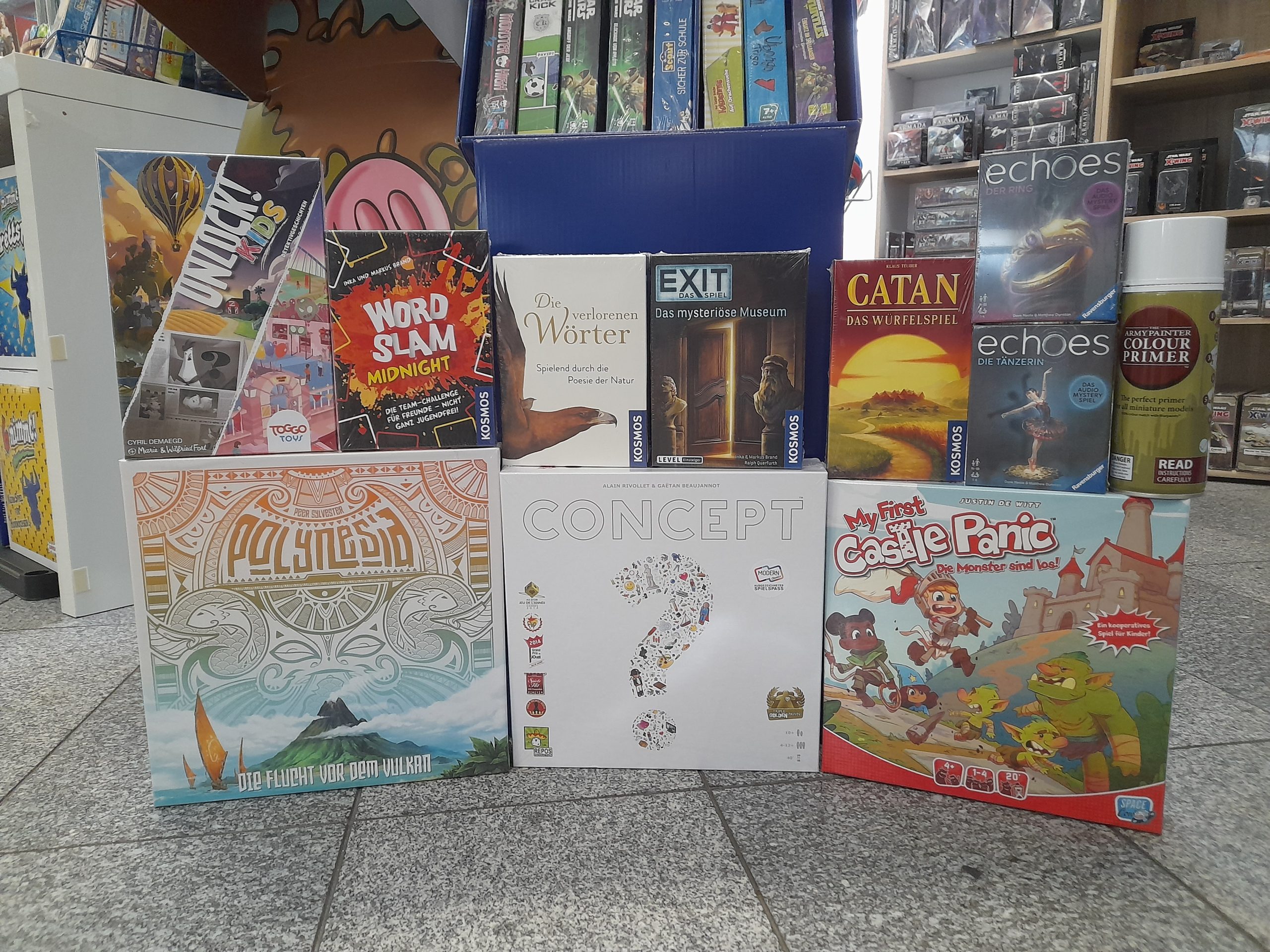 Die Neuheiten überschlagen sich: Unlock Kids. Endlich gibt es auch die Unlock Serie für unsere Kleinen -ohne App. Schmidt hat viel Neues gebracht mit Die Zukunft über Camelot wieder eines für die Vielspieler. Mit Paletti Spaghetti was für die Kids, und mit Gefragt Gejagt wieder was für unsere Partyspieler. Cartaventura ist nun vollständig mit Lhasa, Vinland und Oklahoma. Auch Pegasus hat neue für den Partysektor gebracht mit Remember und Animation. Und Castle Panic wartet mit der My First Edition für den Spielernachwuchs auf. Und den Rest seht ihr auf unseren Bildern oder auch gerne im Store bei uns.