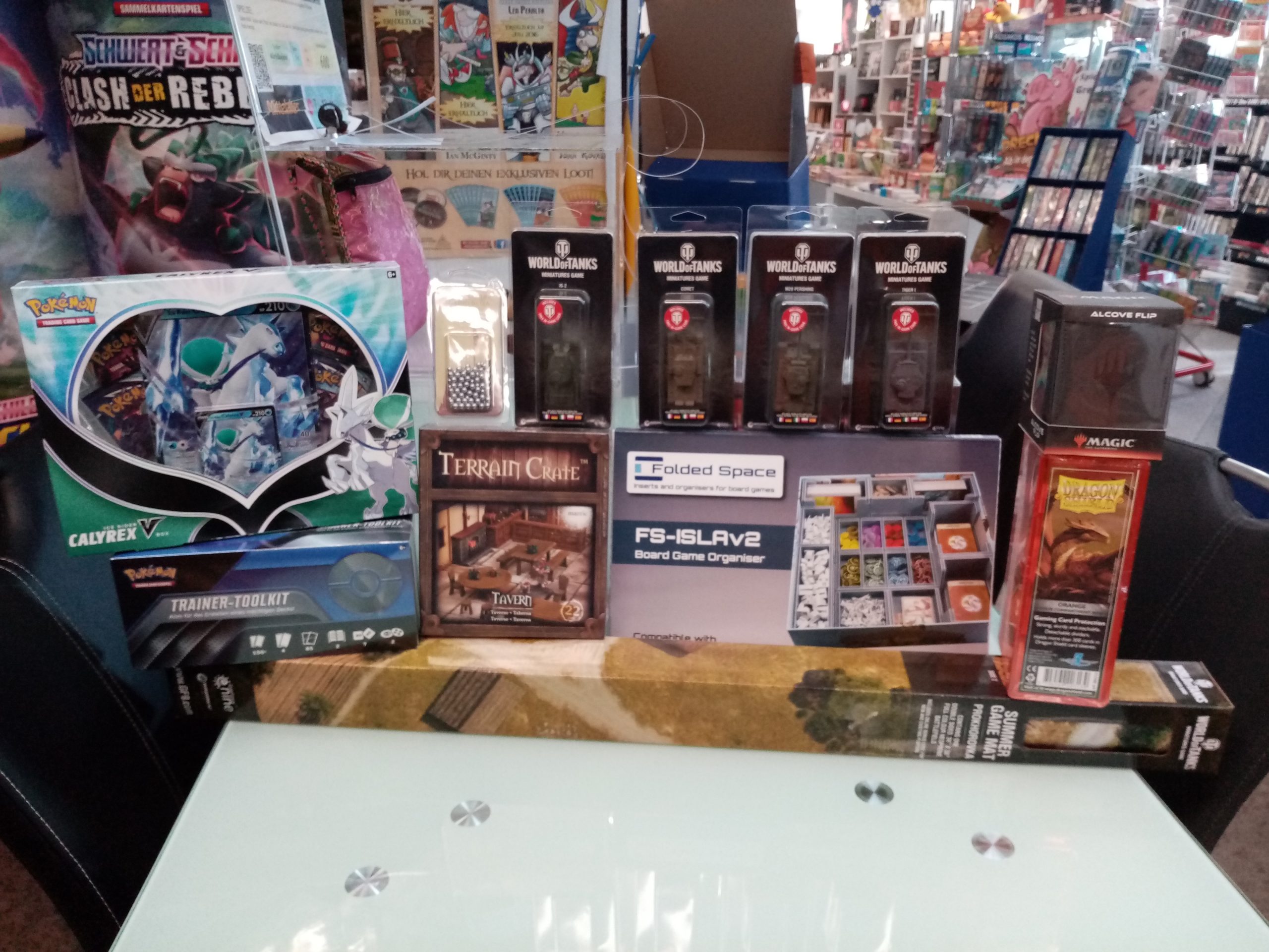Die neue Wave von World of Tanks ist da mit M26 Pershing, IS-2, Comet und Tiger I. Und auch die WoT Playmat ist wieder im Haus. Dazu haben wir weitere englische Pokemon Trading Cards bekommen. Auch die 3D Holzpuzzle von Ugears haben wir wieder aufgeforstet. Aufgrund der Nachfrage haben wie auch Godzilla Clash of Tokyo wieder ins Haus geholt. Und bei den Magic Karten haben wir nun auch endlich die Dungeons and Dragons Booster bekommen, und auch die neuen YGO Karten Majesty of the Dawn haben wir nochmal nachbekommen. Und ganz wichtig: Wir haben endlich auch wieder Sleeves für YGO Karten da. Sleeves sind ja derzeit im allgemeinen sehr schwer lieferbar 🙁 Wer also jetzt Lust bekommen hat, einfach reinschauen bei uns, das Wetter lädt ja förmlich dazu ein. Unsere Spieltische sind geöffnet.