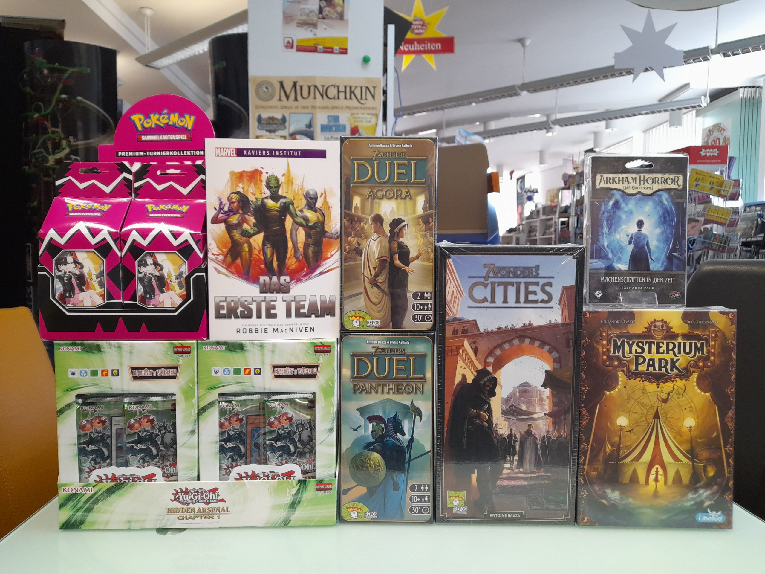 Yu Gi Oh!, Andor Junior, Bakugan, Marvel, Mysterium Park, Pokemon, 7 Wonders Duel, Folded Space Inlays, Eldritch Horror, Star Wars
